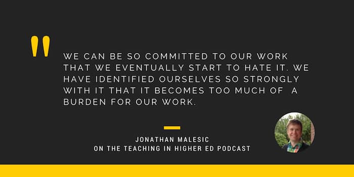 We can be so committed to our work that we eventually start to hate it. We have identified ourselves so strongly with it that it becomes too much of a burden for our work. – Jonathan Malesic