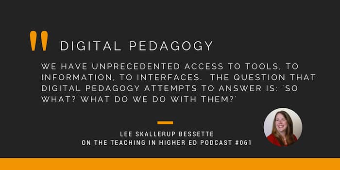 We have unprecedented access to tools, to information, to interfaces, and the question that digital pedagogy attempts to answer is: ‘So what? What do we do with them?' – Lee Skallerup Bessette