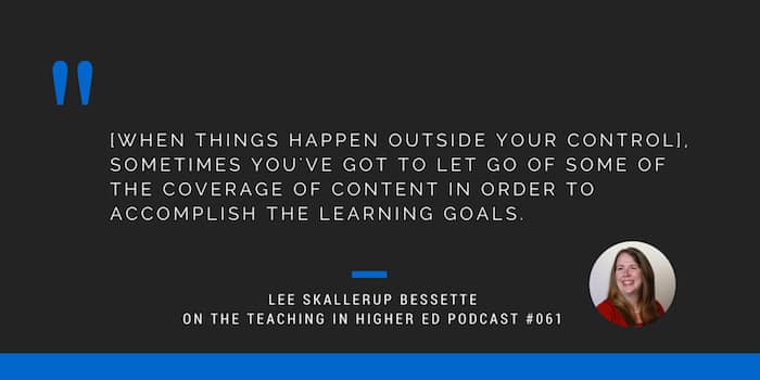 [When things happen outside your control], sometimes you've got to let go of some of the coverage [of course content] in order to accomplish the learning goals. – Lee Skallerup Bassette