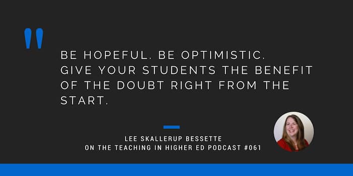 Be hopeful. Be optimistic. And give your students the benefit of the doubt right from the start. – Lee Skallerup Bessette