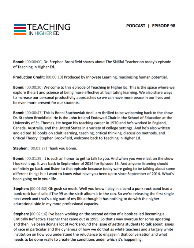 If you have any input in terms of making the Teaching in Higher Ed podcast transcripts as beneficial for faculty as possible, please get in touch with me.