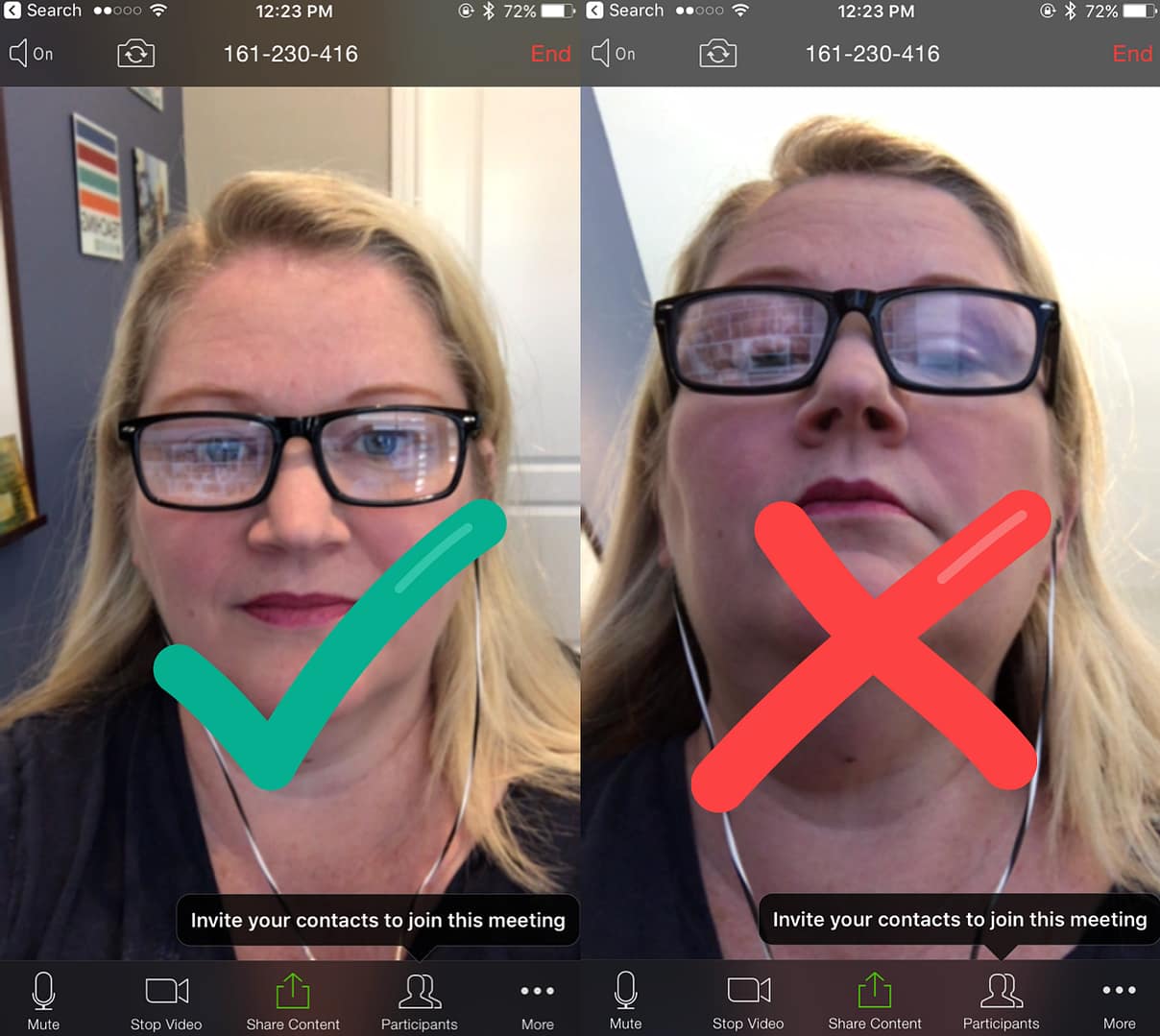 Here is a video of me showing some of the dos and don't for live sessions involving eye contact, lighting, and distractors.