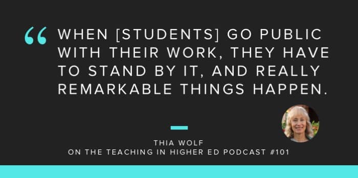 When [students] go public with their work, they have to stand by it, and really remarkable things happen.” – Thia Wolf