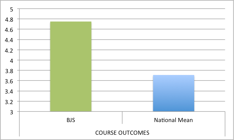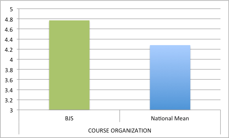 In both classes that were evaluated (Introduction to Business and Sales and Sales Management), the evaluations were rated higher than the national average. This feedback is typically not very valuable to me, since having my institution's data to compare myself to might be a better data set to use.